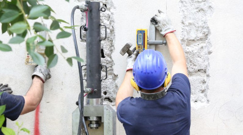 À la fin de l’enfoncement, avant que le pieu ne soit ancré à la fondation d’origine, il sera encore possible d’appliquer des charges supérieures aux charges d’exploitation, avec pour conséquence l’inhibition de l’affaissement primaire après connexion ; en outre, il sera possible d’effectuer un essai de charge pour l’inspection finale des travaux de consolidation de la fondation sur chaque micropieu individuel. Si nécessaire, des injections de résine expansive de surface peuvent être combinées pour rétablir le contact entre la fondation d’origine et sa surface de pose, ou pour améliorer l’épaississement du sol dans la couche traversée par le pieu. GEOSEC® assure la présence constante sur le chantier de son propre technicien qualifié, toujours en étroite collaboration avec le bureau technique central du siège et avec la Direction des travaux.