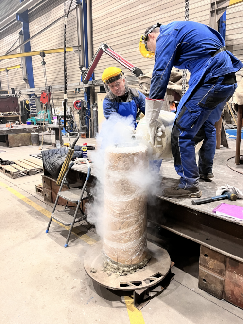 Galets chauffés à 180 degrés et arbres refroidis avec de l’azote liquide à – 200 degrés, soit 400 degrés d’écart entre les deux éléments à monter ensemble. Une fois revenus à une température identique, le montage est sûr et précis.