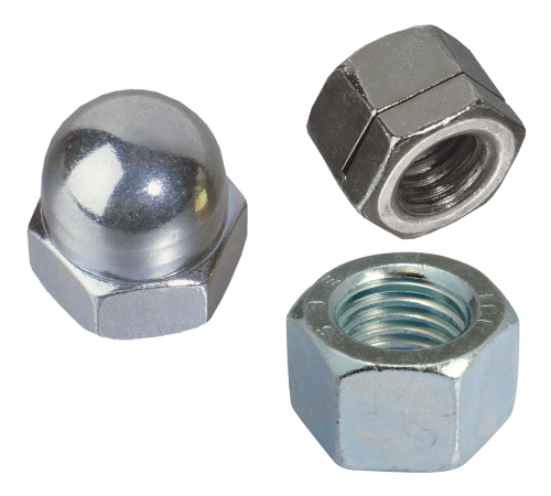 Matières : Acier classe 4, 6, 8, 10, 04, 05 ; acier ASTM A194 ; inox A2, A4 ; plastique ; laiton