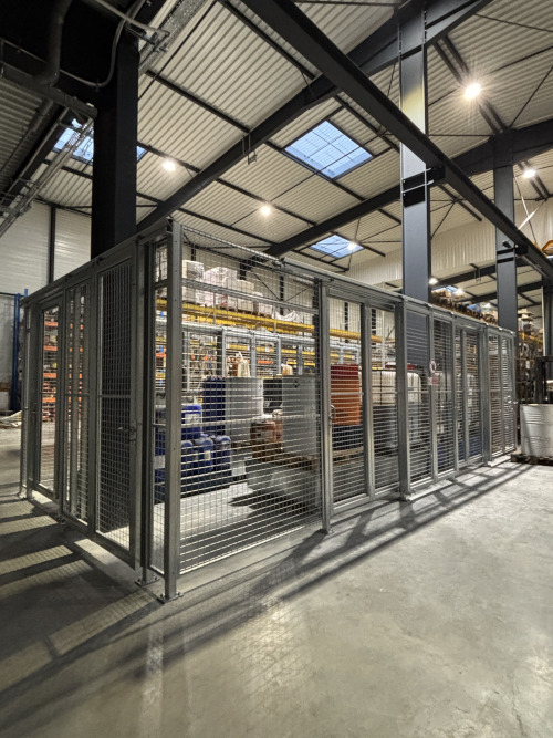 Les cloisons grillagées constituent une option polyvalente pour protéger des zones sensibles, limiter les accès restreints ou assurer la mise en conformité et la protection de vos machines. Selon le niveau de sécurité et de délimitation souhaité, la hauteur de ces installations peut varier de 1,80m à 6m. Pour une fonctionnalité optimale, ces cloisons peuvent être équipées de portes battantes ou coulissantes, disponibles en version simple ou double vantail.