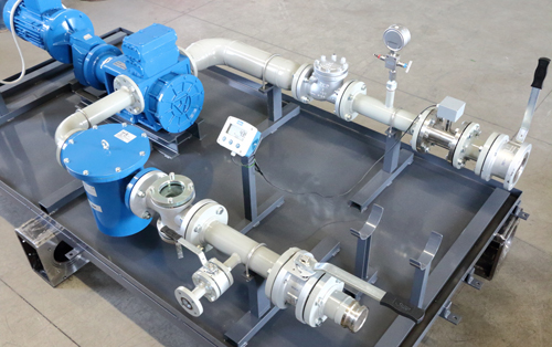 Enveloppe de réchauffage (fluide diathermique, eau chaude ou vapeur) By pass de sécurité à simple ou double sens. Montage sur chariot ou skid avec motorisation électrique ou thermique Coffret électrique monté sur la pompe avec commande in situ ou par radio contrôle.