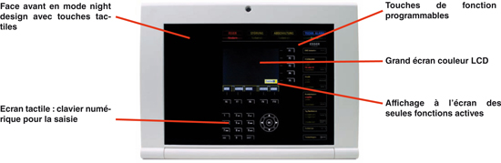 L’écran couleur LCD VGA 1/4 permet également d’afficher graphiques et plans de bâtiments. Ces données peuvent être transférées directement aux services d’urgence.