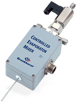 Le CEM W-102A (vanne de mélange 3 voies et évaporateur) permet de générer un débit de vapeur de façon précise, en mélangeant jusqu’à 30 g/h de H2O (32 g/h IPA) avec 4 ln/min maximum de gaz porteur à des pressions de service comprises entre le vide et 100 bar. Le dispositif de mélange à température régulée est utilisé en combinaison avec un débitmètre liquide (thermique ou Coriolis) et un MFC pour le gaz porteur. Ils forment ainsi un système CEM (Contrôle de l’Évaporation et du Mélange).
