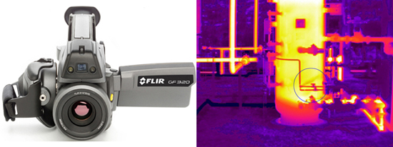 Avec sa résolution élevée, sa sensibilité thermique supérieure et son mode haute sensibilité en option, la GF320 permet de visualiser les fuites pour localiser leur source exacte et commencer les réparations immédiatement. De plus, la GF320 est capable de mesurer les températures avec précision et donc de relever des différentielles et d’améliorer le contraste visuel pour une meilleure détection des émanations.