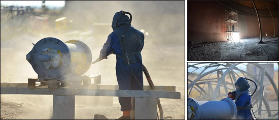 Nos équipes interviennent aussi directement sur les sites de nos clients dans les secteurs du bâtiment, de l’industrie ou des zones aéroportuaires aux niveaux de sécurité souvent très exigeants. Sous la supervision conjointe du responsable de travaux ou chef d’équipe et de notre client nous procédons à l’installation des équipements nécessaires au sablage sur site, à leur mise en sécurité, à l’affichage destiné à la sécurité et aux mesures de prévention adaptées pour préserver la santé de chaque personne amenée à s’approcher du chantier de grenaillage.