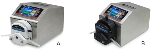 La pompe péristaltique BT600F, débit de 0,006 à 2900 ml/min, écran LCD couleur à écran tactile, vitesse variable, tête de pompe interchangeable monocanal ou multicanaux, sens de rotation réversible, vitesse variable, fonction pleine vitesse. Quatre modes de travail : débit, temps de distribution, volume distribution, cycle de la distribution. Mémorisation de 5 programmes de chaque type. Calibration de débit, anti-goutte, pilotable MODBUS RS485.