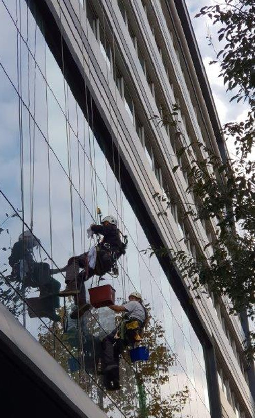 – Pose d’enseignes ou de luminaires, entretien de vitrerie sur site de très grande hauteur