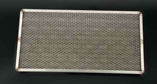 Cadre serti avec renforts en métal déployé et élément filtrant en tricot métallique.