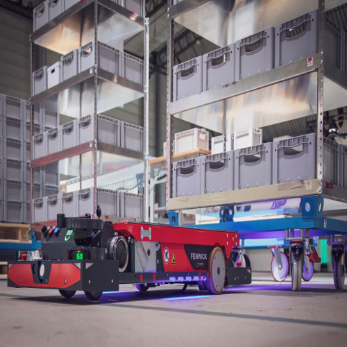 Le robot de transport autonome C-MATIC HP est la solution idéale pour les processus automatisés en fonctionnement mixte, où il doit être capable de travailler efficacement dans le même environnement que des personnes, des chariots manuels et d’autres chariots autonomes. Il transporte en toute autonomie des palettes et des bases roulantes allant jusqu’à 1 000 kg sur de moyennes et longues distances, à une vitesse maximale de 8 km/h. L’innovante navigation par reconnaissance de contours (SLAM) permet au chariot de chercher lui-même son itinéraire, et donc de contourner les obstacles si nécessaire. Aucune infrastructure fixe n’est requise. Le C-MATIC HP est aussi flexible en matière de prise de charges. Il est ainsi capable de récupérer les supports de charge comme les trolleys même quand ils ne sont pas parfaitement positionnés. Enfin, le robot de transport peut être facilement intégré aux processus intralogistiques transversaux grâce à sa commande logicielle basée sur le cloud.