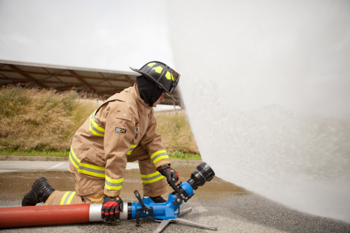 Son jet puissant et réglable assure une couverture optimale pour le refroidissement, la protection ou l’extinction.