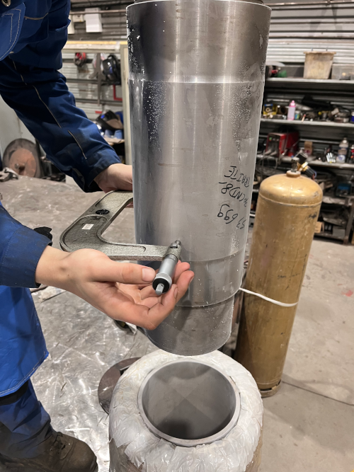 A chaque étape, prise de cotes très précise car le métal bouge de quelques centièmes. Juste ce qu’il faut pour réaliser un montage au cordeau !