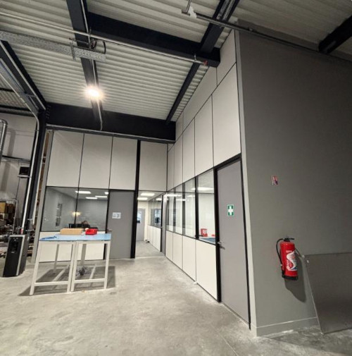 Les cloisons modulaires ont une structure en aluminium, offrant un matériau à la fois léger, résistant et durable. Disponibles sous 2 semaines, elles peuvent être installées rapidement. Contrairement aux cloisons fixes traditionnellement en plaque de plâtre, ces solutions se distinguent par une forte flexibilité, permettant d’être déplacées ou modifiées facilement pour suivre l’évolution de votre activité. Plusieurs modèles s’adaptent à vos contraintes de hauteur et d’usage. La gamme H5, d’une épaisseur de 60 mm, est principalement utilisée en milieu industriel et peut atteindre jusqu’à 3,75 m de hauteur. Le modèle H7, plus adapté pour les bureaux, possède une épaisseur de 75 mm et peut atteindre jusqu’à 3 m de hauteur. Pour des besoins plus spécifiques, la gamme H10 a une épaisseur de 106 mm et permet des installations allant jusqu’à 10 m avec une isolation acoustique supérieure.