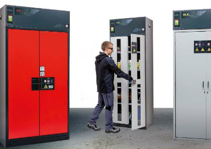 Les armoires à filtration des gammes FX-LINE, CX-LINE and SLX-LINE avec ventilation intégrée, permettent de pouvoir stocker en un même lieu des substances différentes. Les vapeurs dangereuses sont extraites et absorbées quasi en même temps.