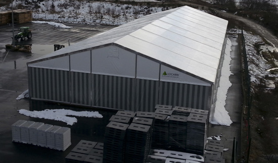 Idéal pour une extension de surface de stockage temporaire, cet entrepôt temporaire est disponible à la vente et à la location. Il se pose sans fondation, sur tous types de sols, bitume, béton ou terre compactée et saura trouver sa place directement sur votre site.