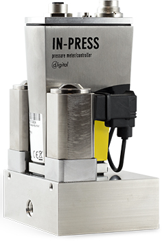 Le régulateur de pression de processus (PPC) P-802CI permet une régulation de pression précise avec des volumes fermés (un seul raccord de fluide). Ce PPC peut être utilisé pour des gammes de pression de 17,5 à 350 mbar jusqu’à 3,2 à 64 bar (absolue ou relative). L’instrument intègre un capteur de pression piézorésistif à membrane, une carte électronique numérique avec sortie analogique et RS232, et en option des interfaces bus de terrain, ainsi qu’un régulateur PID pour le contrôle de la pression au moyen de deux vannes de régulation intégrées. Cette construction à double vanne est une alternative compacte et économique aux configurations où les régulateurs de pression amont sont combinés à des ports d’échappement et à des soupapes de surpression séparés. Le fait que la soupape de surpression n’évacue pas en continu vers l’atmosphère est considéré comme un grand avantage. En outre, le système peut être réglé pour une (dé)pressurisation rapide ou contrôlée en douceur. Le modèle IN-PRESS est de conception robuste (IP65) et est destiné à être utilisé dans des environnements industriels.