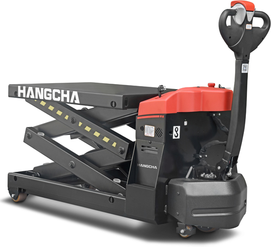 Un transpalette à plateforme élevable tout électrique, traction et levée avec ses batteries gel sans entretien en 3 versions.