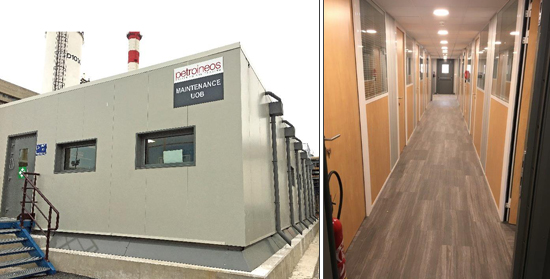 Bâtiment modulaire Blast résistant, installé dans la raffinerie de Lavéra. Les objectifs de ce projet sont de regrouper le personnel de maintenance des unités de la raffinerie et de les protéger en cas d’explosion sur le site.