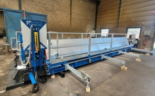 Pour la préfabrication sur chantier, la société utilise des moules de poutres multi-poches qui permettent la réalisation de poutres en béton armé. Développé en partenariat et nouveau sur le marché, le moule de poutres à commande hydraulique a la particularité d’avoir une assistance complète pour l’ouverture et la fermeture des joues latérales. La sécurité des compagnons ainsi que l’ergonomie ont été au centre de son développement. Son utilisation assure également à la société une garantie sur le haut niveau de qualité de la fabrication et une amélioration de sa productivité.